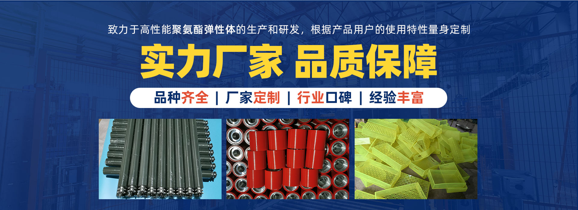 蘇州凱騰聚氨酯制品有限公司多年來一直致力于高性能聚氨酯彈性體的生產和研發(fā)。鑒于聚氨酯彈性體的特殊的出色性能,幾乎所有的工業系統中都會使用到聚氨酯彈性體的產品,我們的產品服務于眾多的行業如:石油、礦山、冶金、工程機械、汽車制造、多晶硅生產、核工業項目、紡織印染包裝、農牧、金屬加工、水泥陶瓷、糧食碼頭、物流倉儲自動化、粉體成型與研磨等等;由于不同的行業和工況條件對聚氨酯彈性體的產品的使用性能要求是不同的,我們可以根據用戶產品特別的使用特性專門為用戶量身定制產品。 了解更多+
